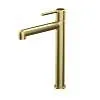 Стильный высокий смеситель для настольного умывальника удачно сочетает актуальный современный дизайн и новый трендовый оттенок матового золота с брашированным покрытием. Тонкая удлиненная ручка добавляет смесителю изящества и комфорт в управлении. Расстояние между ручкой и изливом увеличено для большего удобства.