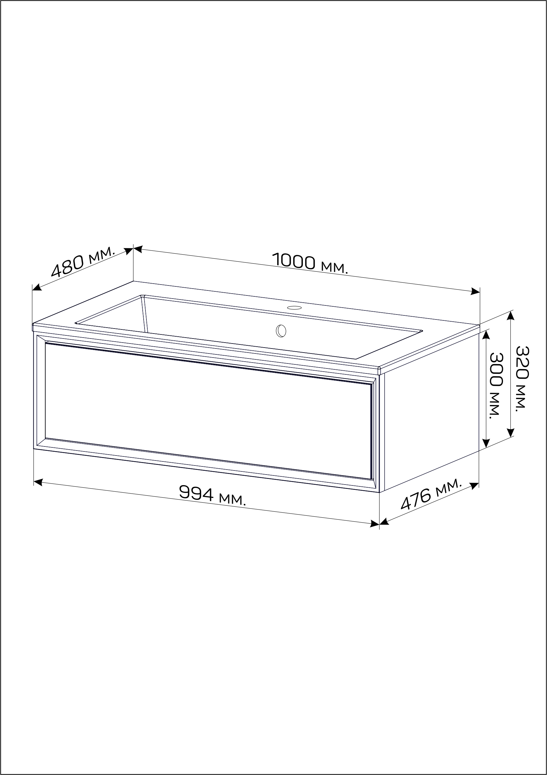 Тумба под раковину Milacco 100П (994х300х476) 1я белый (верх)