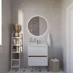10 070 Р Тумба под раковину Veil 50П (490х560х400) 2я белая аляска/дуб вотан